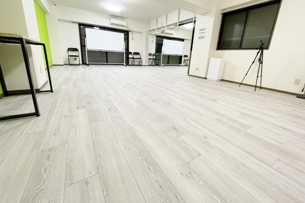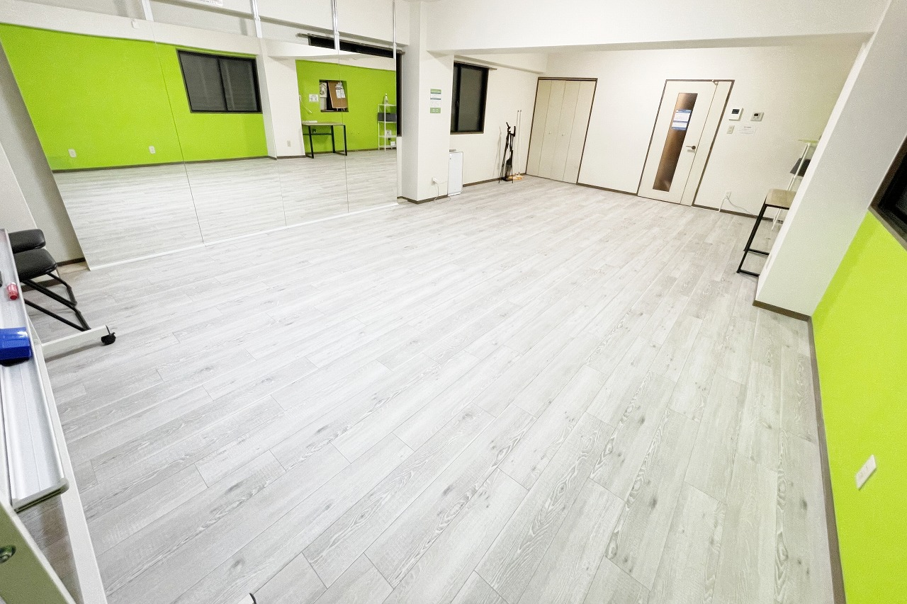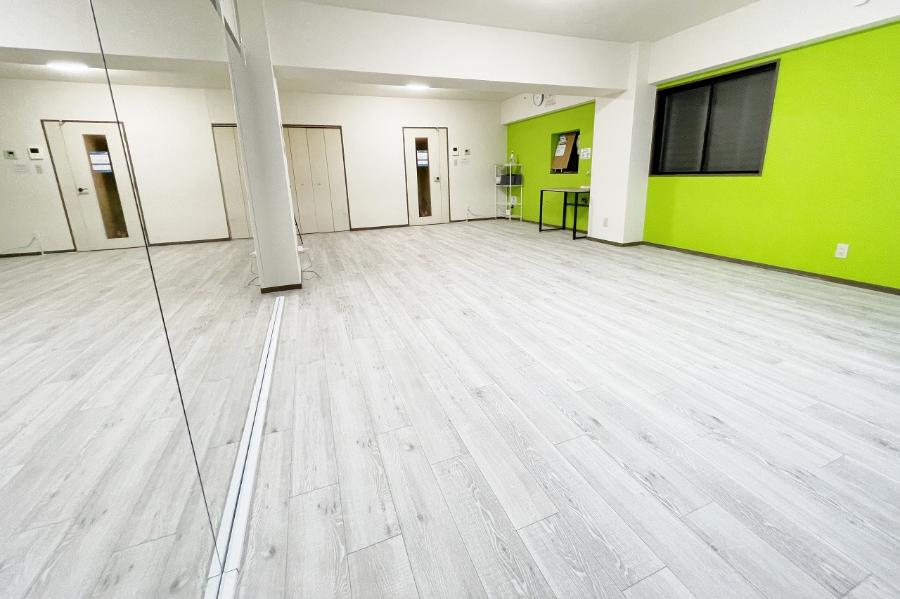RADABASE(ラッドベース)神戸御影店は、全面フローリングで、全身が見れる大型鏡を設置しているレンタルスタジオです。