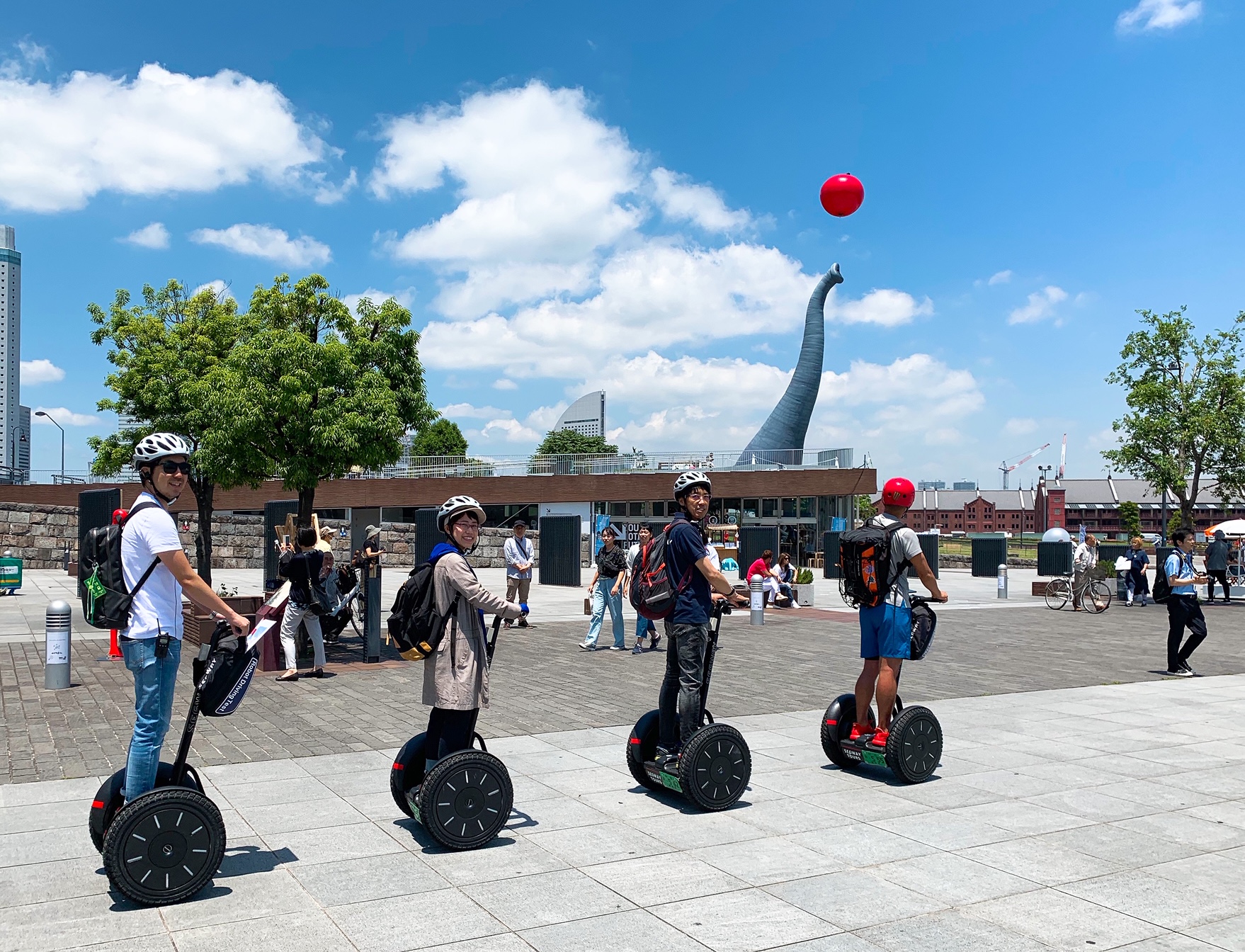 汽車道、赤レンガ倉庫周辺、象の鼻パークなどの人気の観光スポットを周遊。国内で唯一、都心臨海部公道を走行するセグウェイツアーです。